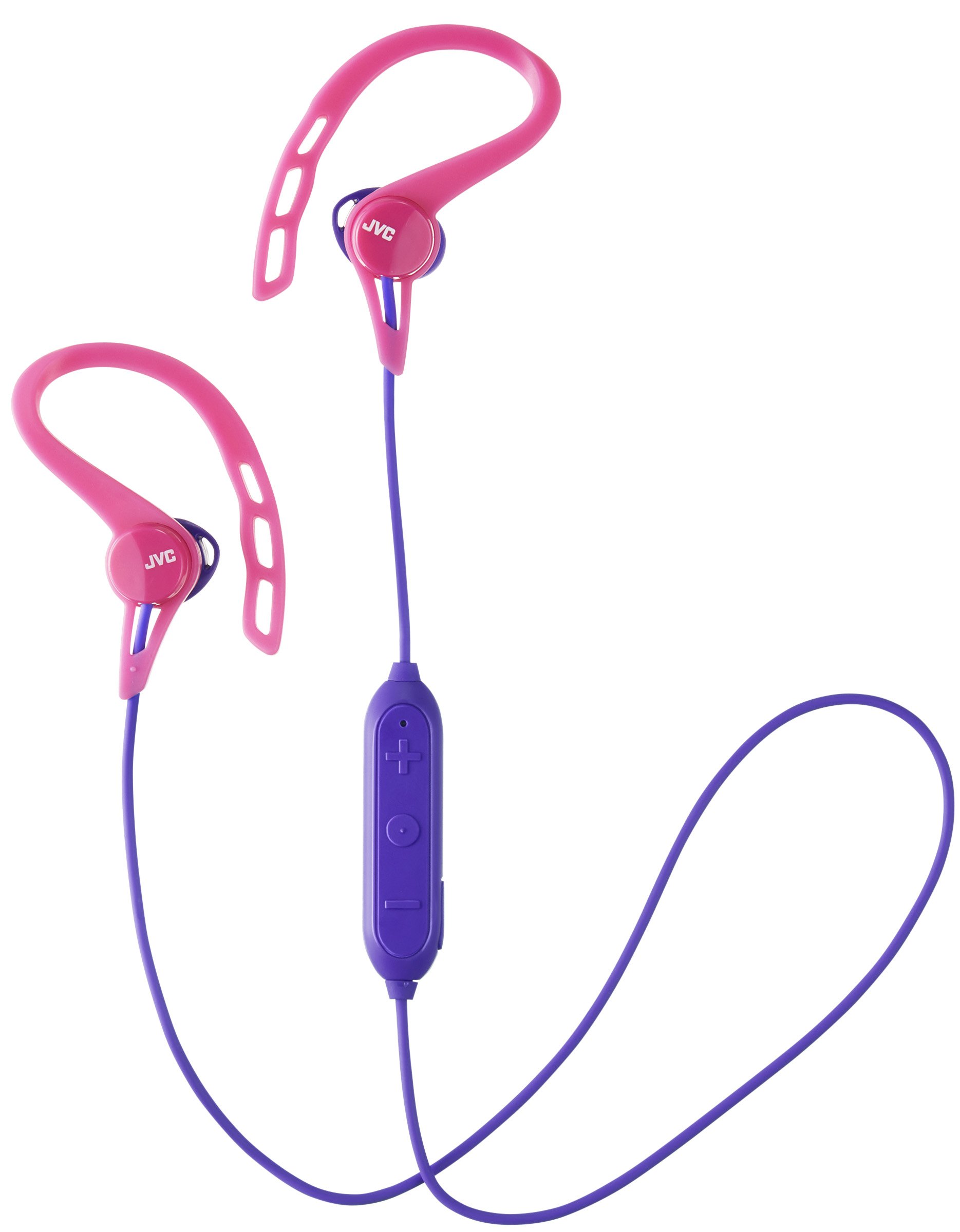 JVC Bluetooth In-Ear Sports Earbuds with Clip and Mobile Hook (Pivot Motion), Sweat Proof (IPX2), 4 Hour Runtime, Pink
