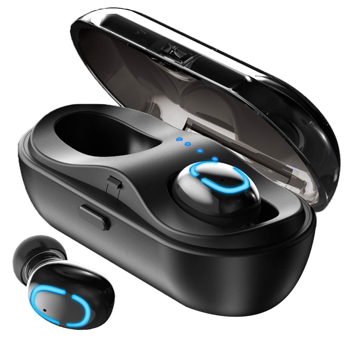 【Portable Charging Case】With 600mAh of lithium-ion battery in each headset, the wireless earbuds can last approximately 4~5 hours of music after fully charging them. The 600mAh charging case can provide a full charge about 4 times, which can make the headphones last up to 20 hours. Also its compact and portable design provides your earbuds the best protection.